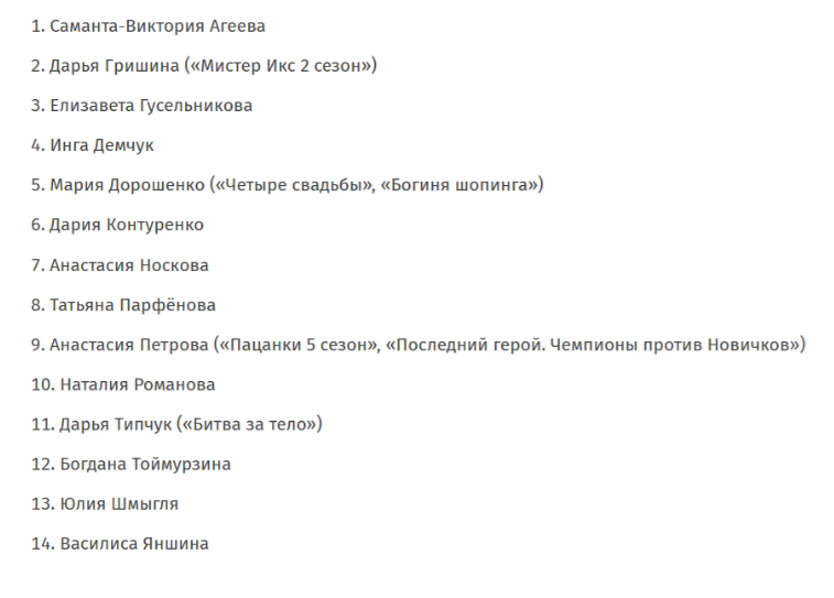 Всем привет. Ко бы мог подумать, что проект "Большие девочки" станет настолько рейтинговым, что сместить по популярности традиционно мощных "Пацанок". Уже скоро будут съемки третьего сезона... В то время как в 10 сезон пацанок еще только идет кастинг. За два месяца с начала второго сезона «Больших девочек» из 14 участниц в школу похудения остались только три финалистки: Дарья Контуренко, Анастасия Петрова и Богдана Тоймурзина. Вот полный список всех участниц... Помимо основной номинации (сбросить максимальный вес в школе Больших девочек), в этом сезоне ввели отдельный конкурс «Домашнее похудение» — за него тоже присуждается денежный приз, что поддерживает мотивацию всех участниц. Полуфинал включал в себя несколько испытаний. Супертренировка на калории
