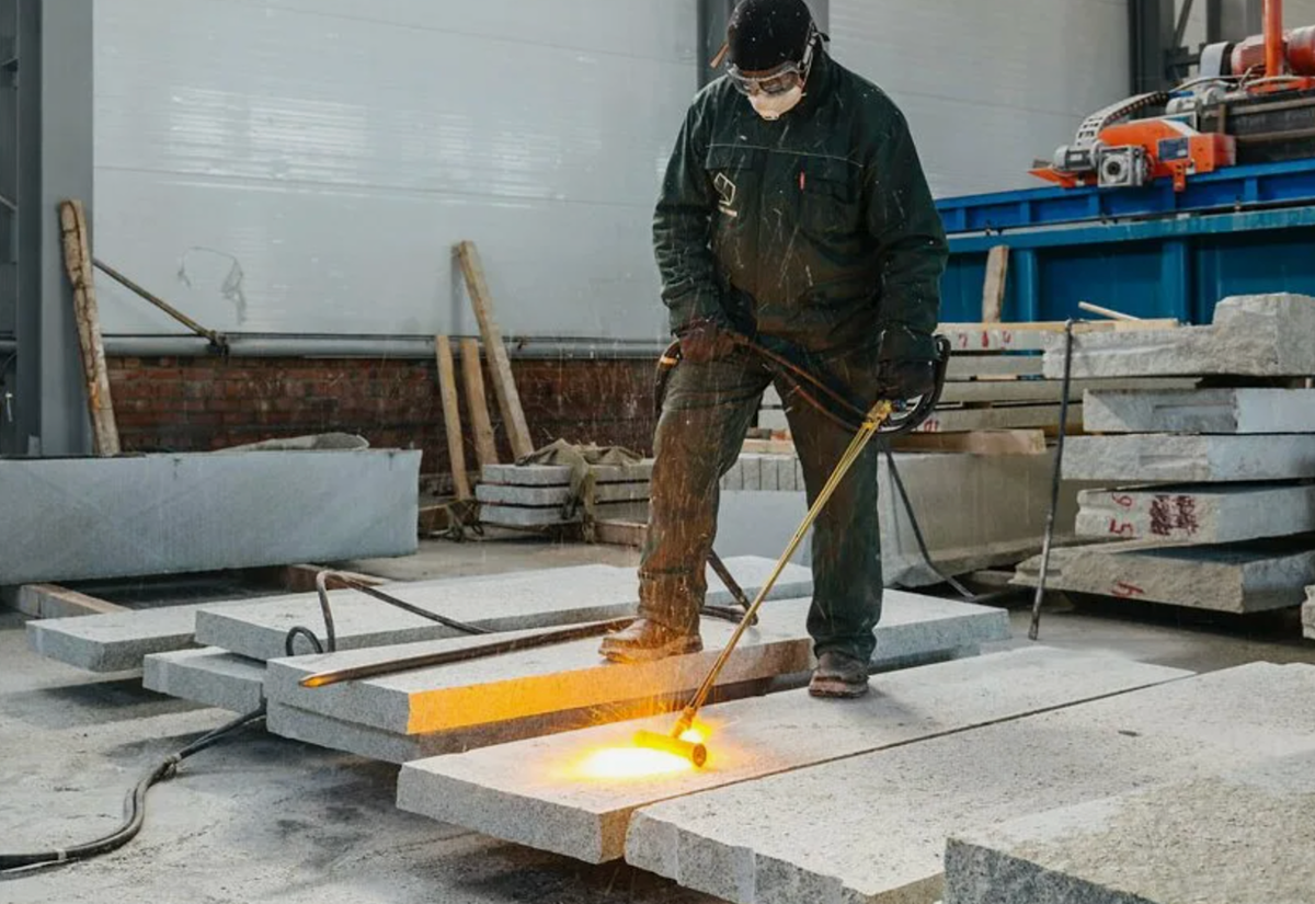 Комплексное использование газовых горелок и вспомогательных инструментов обеспечивает эффективную термообработку гранита, способствуя преображению его внешнего вида и улучшению эксплуатационных характеристик.