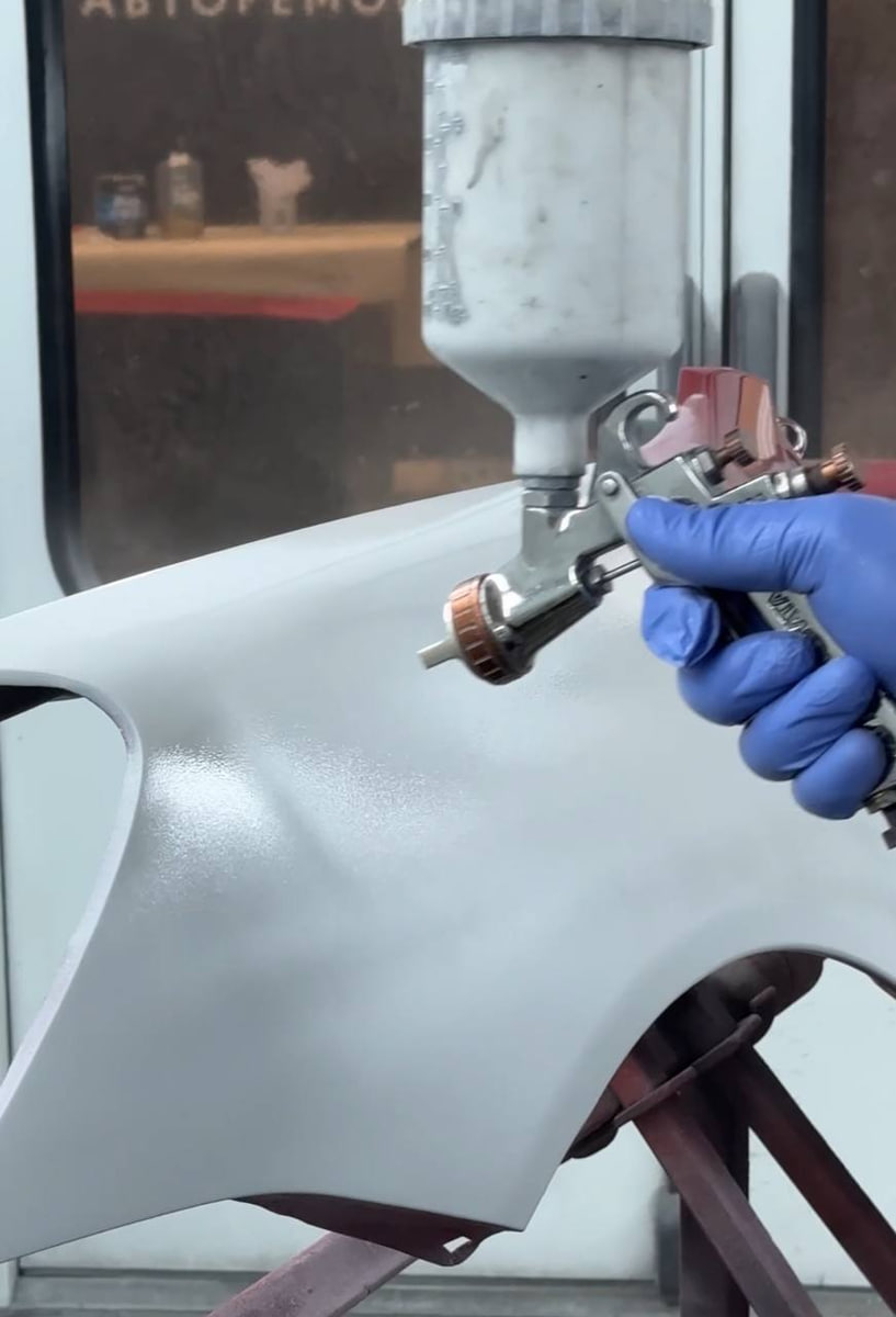 Смешивание Очень важно точно соблюдать указанные пропорции при смешивании грунта. Используйте для этого плоскую лопатку — обычное встряхивание не подходит. Если вы смешиваете компоненты не по объёму, а по весу, обязательно пересчитайте пропорции или воспользуйтесь готовой таблицей весовых соотношений, чтобы все компоненты были в правильной пропорции. Пользуйтесь только рекомендованными отвердителем и разбавителем. Они сделают нанесение и шлифовку проще, а слои будут лучше связываться между собой. Ни в коем случае не добавляйте произвольные промышленные растворители, например, такие как 646-й — подобные эксперименты часто приводят к дефектам покрытия и неправильному отверждению. Нанесение Перед нанесением грунта-наполнителя обработайте поверхность первичным грунтом. Первый слой должен быть тонким и наноситься максимально равномерно, чтобы избежать излишнего впитывания и появления контуров. Дайте первому слою полностью высохнуть — он должен стать слегка матовым. Не стоит сушить слой фено