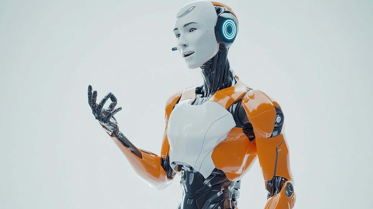 Создано на основе запроса: full-body humanoid skinny male AI robot with orange body and a white human like face, soft human-like face and human-like eyes, calm neutral expression speaking, wearing headset with microphone, minimal glowing blue accents, standing and gesturing to the left with one hand in a welcoming pose, futuristic but friendly appearance, ultra-clean design, on a plain white background, high realism, professional lighting --- Автоперевод: Гуманоидный человек-робот с искусственным искусством с гуманоидным человеком с оранжевым телом и белым человеком, мягким человеческим лицом и человеческими глазами, спокойным нейтральным выражением, говорящим, ношением гарнитуры с микрофоном, минимальными синими синими акцентами, стоящими и жестами слева с одной рукой в гостеприимном позе, футуристическом, но дружелюбном внешнем виде, ультра-конфликтно Как тебе эта иллюстрация? 🤔 https://dzen.ru/id/65c0c65c86e4f837c27b24d7 #ИИ #AI #нейросеть #midjourney #art