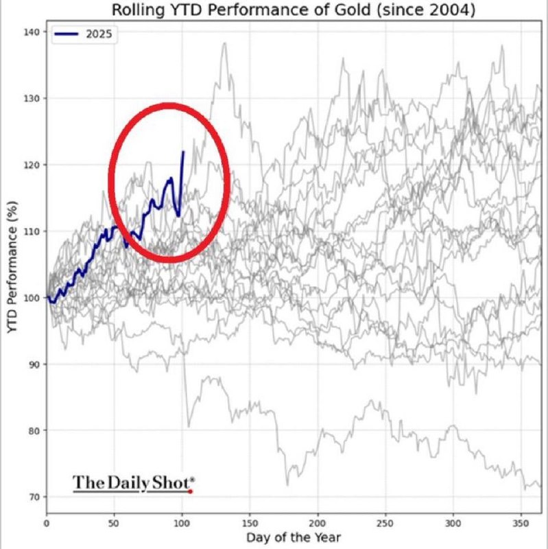 Золото кричит. А вы слышите? Тихо. Без новостей. Без обвала. Но рынок уже всё понял. Он говорит, как умеет — ценой. И сегодня золото буквально кричит: «что-то не так». С начала года золото выросло на 26%. Это — лучший старт за последние 20 лет. Лучше, чем в ковид. Лучше, чем в 2008. Даже лучше, чем в 2011, когда рушилась еврозона. И это не просто “рынок прёт”. Это — симптом. Золото не растёт просто так. Оно растёт, когда: • теряется доверие к деньгам • расшатываются валюты • грядёт кризис долга • в мире пахнет страхом Именно страх — главный двигатель золота. Когда всё стабильно — золото скучное. Когда всё рушится — золото взлетает. Что это может значить сейчас? • ФРС вот-вот сдастся — и снова зальёт рынок ликвидностью (на вчерашней пресс-конференции Пауэл отметил, что «ФРС готова предоставить ликвидность банкам») • Бюджет США стал неконтролируемым • Геополитика подогревается, но пока без официальных заголовков • Центробанки мира — особенно Китай — покупают золото тоннами