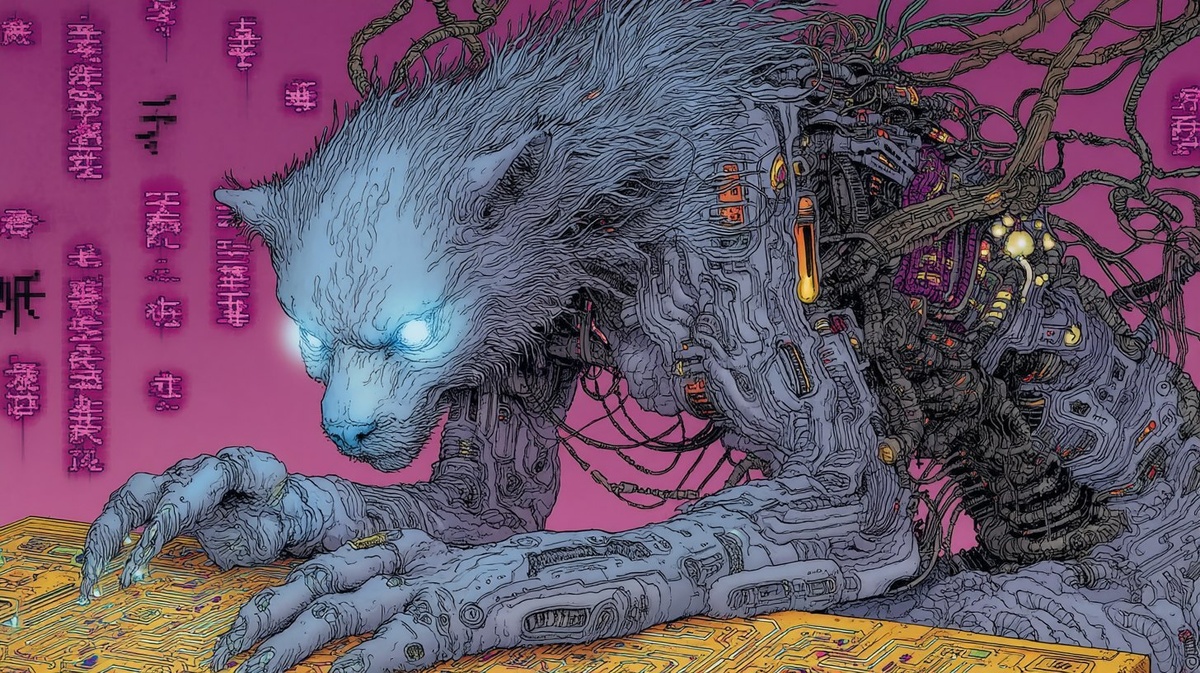 Создано на основе запроса: illustration of cybericy ice coldcore hazer form yokai, by Moebius