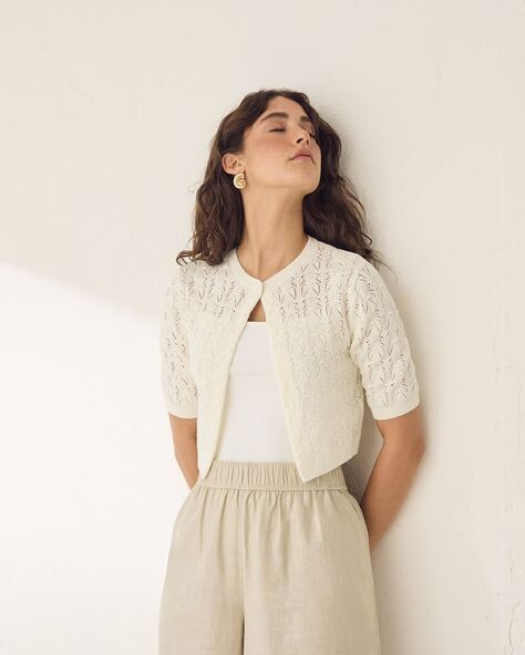 Лучший многослойный предмет одежды, кардиган с короткими рукавами, идеально сочетает тепло и воздухопроницаемость. Застегнутый на пуговицы, он действует как легкий трикотажный топ. Расстегнутый, он станет идеальным дополнительным слоем поверх платьев и маек, когда температура падает.