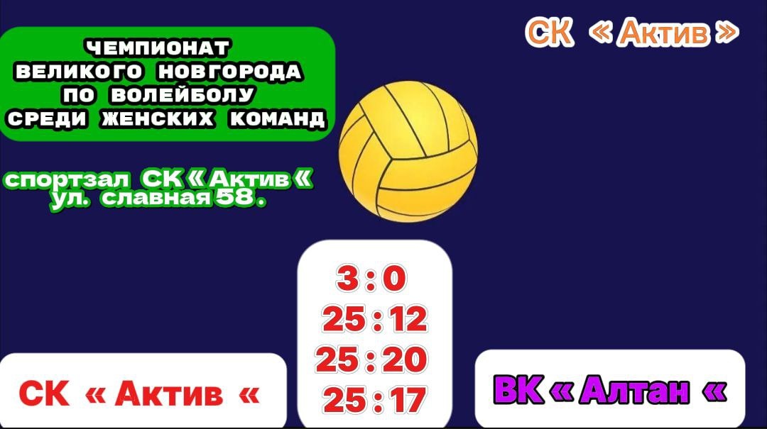 Чемпионат Великого Новгорода по волейболу среди женских команд продолжает набирать обороты. Сегодня в спортивном зале СК «Актив» состоялся очередной матч, в котором хозяева паркета одержали победу. Однако на этом чемпионат не заканчивается — уже завтра, нас ожидает новое увлекательное событие. В 16:30 в спортивном зале ФСК Вересова состоится матч между ВК «Феникс» и СШ № 2 «Энергия». Не упустите возможность поддержать новгородский волейбол и насладиться увлекательным зрелищем!