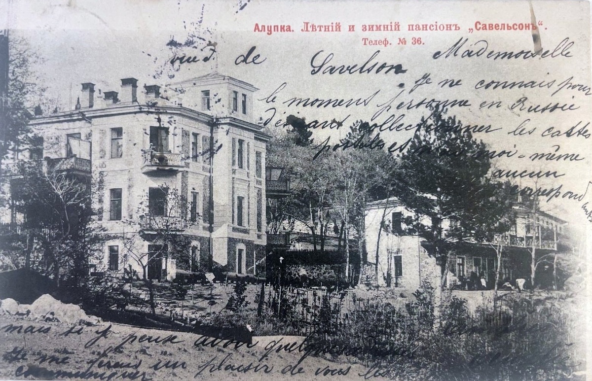 Алупка. Открытка начала ХХ века. Зимний и летний пансион "Савельсон", а также реклама этого пансиона. Здания не сохранились. #алупка #раритет #интересныеместавкрыму #ретрооткрытки #старыезданиякрыма источник: old_alupka_simeiz