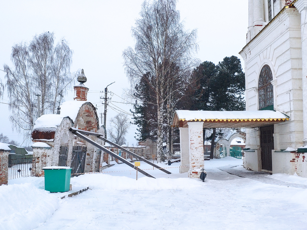В Сольвычегодске сохранилось три церкви. Благовещенский собор, который на фото выше. Сейчас музей. Введенский собор, до которого мы дойдём чуть позже. Он сейчас действующий храм. И вот третья церковь.