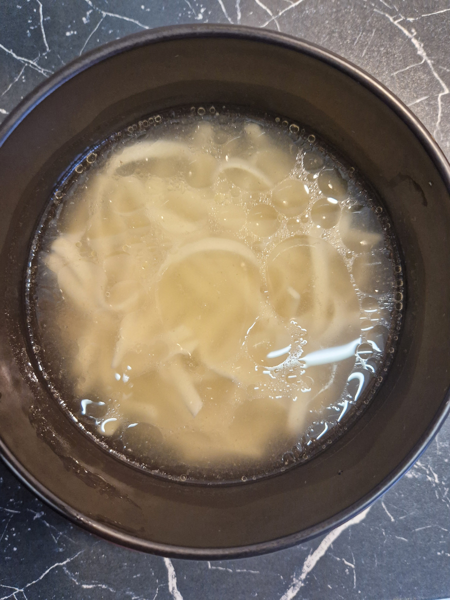 Ребенок ответил, что супом-лапшой. Но в садике вкусный, а дома не вкусный.