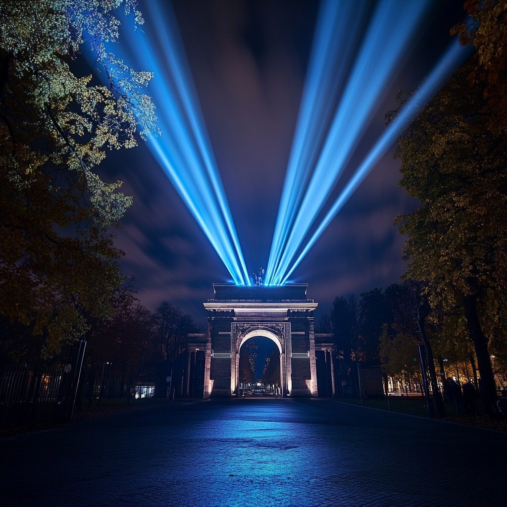 Создано на основе запроса: Laserbeams at Tennhauser Gate Photorealistic