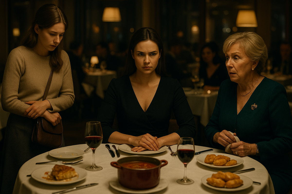 «Хотите знать, почему Ваня не пришёл? — спросила она, и в ресторане стало так тихо, что слышно было, как падает салфетка. — Потому что он дома. Со мной. И если вы ещё раз решите, что знаете, как нам жить, я устрою вам такой борщ, что вы до конца жизни будете есть только пиццу». В этот момент в зал вошёл Ваня. Он выглядел так, будто только что пробежал марафон, но всё-таки сказал: «Мам, хватит. Мы с Машей сами разберёмся».