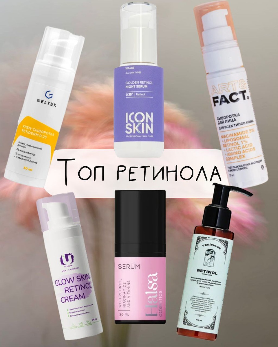 Пора наводить ретинольную красоту Собрала для вас обновлённый топ сывороток и кремов с ретинолом с разными концентрациями, текстурами и эффектами. Найдётся фаворит для каждого 1. Гельтек Retiderm 0,25% Мягкая сыворотка с ретинолом и витамином С — осветляет, борется с морщинками и пигментацией. Отличный вариант для новичков и чувствительной кожи 2. Art&fact с ретинолом 1%, ниацинамидом и молочной кислотой Липосомальный ретинол в высокой концентрации + поддерживающие активы. Работает мощно 3. Halsa cosmetics с ретинолом и витаминами Деликатная формула для тех, кто хочет попробовать ретинол, не рискуя получить шелушение. Подходит на каждый день 4. Icon Skin 0,7% Для уверенных пользователей. Работает плотно: разглаживает, осветляет, улучшает рельеф. Берите, если вы с ретинолом на «ты» 5. Verifique для шеи и декольте Особая зона — особый крем. Ретинол 0,5% в питательной текстуре, направленной на укрепление и лифтинг 6. The U Glow Skin 0,3% Универсальный вариант для ровного тона, борь