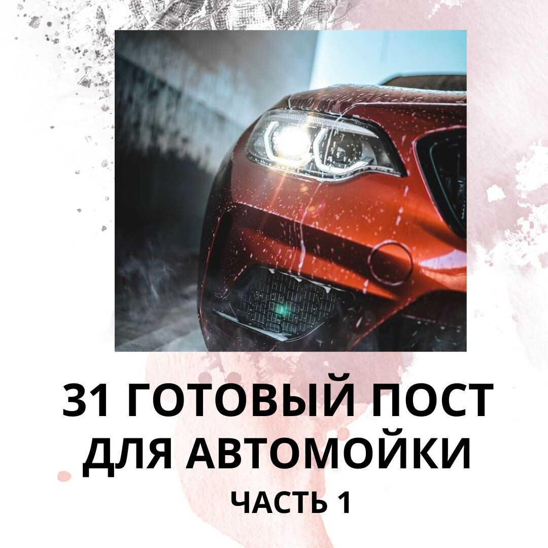 Купить посты можете на ВБ: Темы постов: 1.Почему нельзя забивать на мойку зимой? 2.Летний зной: как спасти машину от перегрева? 3.Как часто надо мыть машину, чтобы не жалеть потом? 4.Чем опасна грязь для кузова? Спойлер: ржавчина – это не мода! 5.Почему мы не используем дешёвую химию? 6.Какой вред наносит бесконтактная мойка? Или это миф? 7.Воск: понты или реально нужная штука? 8.Почему тряпка из гаража – зло для твоей машины? 9.Как избавиться от запаха сигарет в машине? 10.Почему химчистка салона – это не роскошь, а необходимость? 11.Лайфхаки для чистого салона: простые советы, которые работают! 12.Тканевый или кожаный салон – что сложнее в уходе? 13.Почему кондиционер воняет? И как с этим бороться? 14.Стоит ли мыть потолок в авто? Или пусть себе живёт? 15.Детская безопасность: как убрать пятна от сока и шоколада? 16.Как спасти коврики от грязи и соли зимой? 17.Как правильно подготовить машину к зиме? 18.Почему мойка перед летом – мастхэв? 19.Осенняя мойка: как спасти авто от листьев