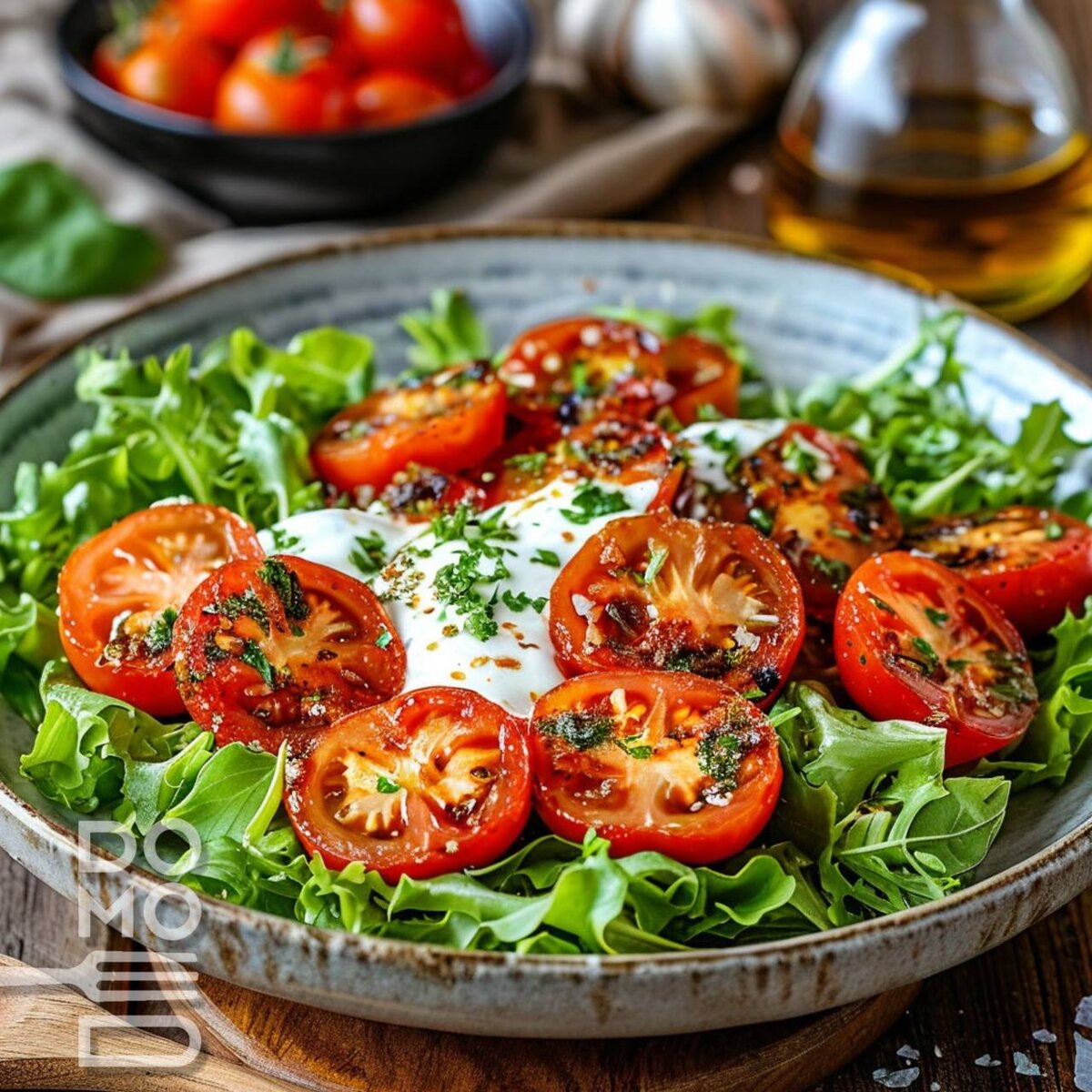 🍅 САЛАТ С ЖАРЕНЫМИ ТОМАТАМИ ЧЕРРИ Тёплые помидоры с хрустящей корочкой и чесночно-йогуртовой заправкой. ⏳ Время приготовления: 15 минут 🍽 Порций: 2-3 ❤️💛❤️💛💛💚❤️💛💛💚💚 Основные: - Томаты черри — 400 г - Салатная смесь — 100 г (руккола + латук) - Йогурт натуральный — 200 мл (или мацун) - Масло оливковое extra virgin — 40 мл Для заправки: - Чеснок — 1 зубчик - Соль морская — ½ ч.л. - Перец чёрный свежемолотый — ¼ ч.л. 💚💛❤️❤️❤️💚❤️💛❤️💛💛❤️💛 1️⃣ Томаты: 1. Разрежьте черри пополам вдоль. 2. Разогрейте сковороду, влейте 1 ст.л. масла. 3. Обжарьте срезом вниз 2-3 минуты до карамелизации. 2️⃣ Заправка: 1. Смешайте йогурт с оставшимся маслом. 2. Добавьте чеснок, натёртый на микропланшете. 3. Приправьте солью и перцем. 3️⃣ Сборка: 1. На сервировочное блюдо выложите йогуртовую основу. 2. Разместите листья салата и тёплые томаты. 3. Сбрызните бальзамическим кремом (по желанию). 💡 СОВЕТЫ: - Йогурт: Для густоты предварительно откиньте на сито. - Подача: Украсьте микрогрином и