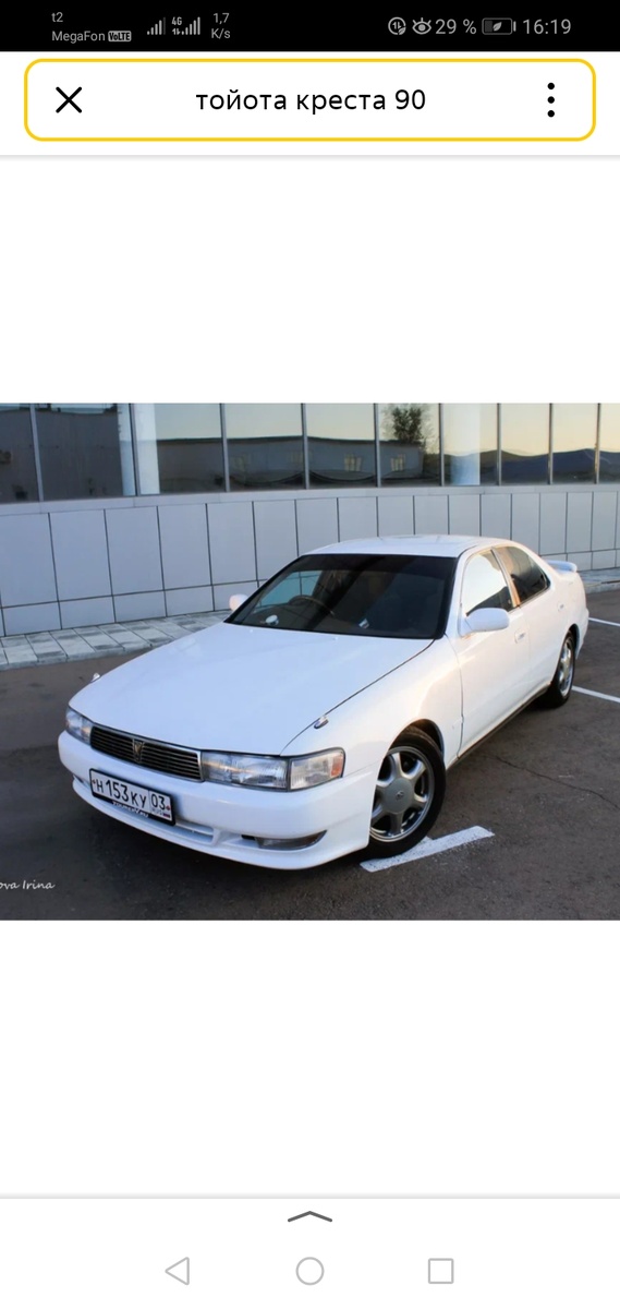 Toyota Cresta, 2.5, задний привод, полный сток. Модель X90 Cresta дебютировала в 1992 году со значительными изменениями в дизайне и механике по сравнению с X80. Автомобиль увеличился в размерах и получил несколько новых комплектаций. Как и прежде, двигатели были позаимствованы у предыдущего поколения без 7-цилиндровых двигателей 1G с наддувом. В 1994 году, после обновления средней модели, Toyota изменила дизайн передней решетки и задних фонарей. Стандартное оснащение включало автоматический климат-контроль, боковые балки во всех дверях и подушку безопасности со стороны водителя в 1995 году. Базовая комплектация SC имела несколько вариантов: бензиновый или дизельный двигатель в сочетании с 4-ступенчатой автоматической коробкой передач. Следующая комплектация, Suffire, имела больше оборудования, включая опциональную 5-ступенчатую механическую коробку передач.