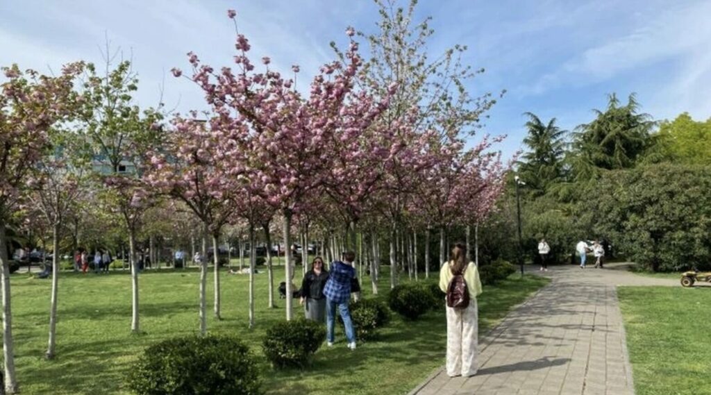 В Сочи расцвела черешневая аллея у Морского вокзала, став одной из самых популярных весенних локаций города, сообщает «КП»-Кубань». Жители и туристы делятся фотографиями в соцсетях, а сам сад все чаще сравнивают с известным парком «Краснодар». Аллею высадили еще в 2011 году — тогда это было приурочено к 1000-дневному отсчету до начала зимней Олимпиады. Сейчас сад вновь оказался в центре внимания. Особенно интересно то, что на черешневые деревья в этой аллее была привита сакура, благодаря чему цветение выглядит особенно эффектно — бело-розовые цветы покрывают ветви пышным облаком. Горожане устраивают здесь не только фотосессии, но и пикники, прогулки, а кто-то просто приходит посидеть в тени деревьев. Однако цветение продлится недолго — максимум до начала мая. Помимо черешни, Сочи в этом году радует и другими необычными растениями. В парках и садах зацвели редкая желтая асфоделина, занесенная в Красную книгу, декоративная михелия из китайского Куньмыня и дикие пионы, которые можно увиде