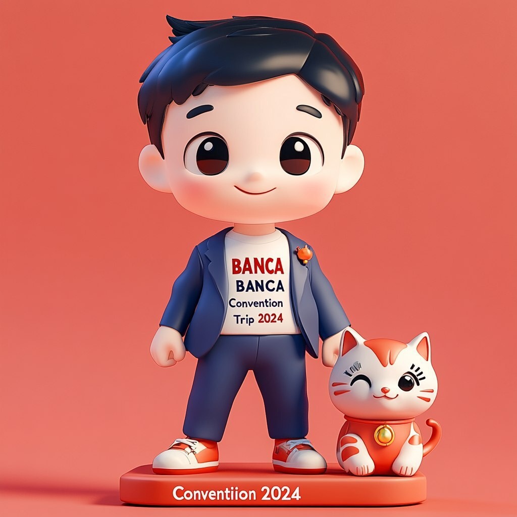Создано на основе запроса: 3D modelling, clean background, face front , stand straight, little boy, cartoon style, round face, big head , black hair with red highlights, full body , shoes , wearing suit with DBS logo, white T-shirt with "BANCA Convention Trip 2024" text, holding a japanese style lucky cat, vibrant colour --- Автоперевод: 3D-моделирование, чистый фон, спереди лица, стоять прямо, маленький мальчик, стиль мультфильма, круглый лицо, большая голова, черные волосы с красными бликами, полное тело, обувь, костюм с логотипом DBS, белая футболка с текстом «Банка конференц Красиво выглядит? 🤔 https://dzen.ru/id/65c0c65c86e4f837c27b24d7 #ИИ #AI #нейросеть #midjourney #art