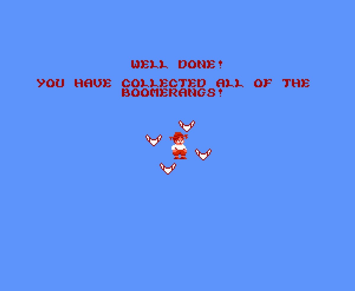 «Boomerang Kid» – Очередной платформер со сборника «Quattro Adventure». Собираем все бумеранги на уровне и уходим в следующую зону, имеются разветвления в пути. Главный герой может только прыгать, уничтожать врагов нельзя, смерть сулит всё – животные, вода, высота, разрушаемые платформы и даже время против нас.