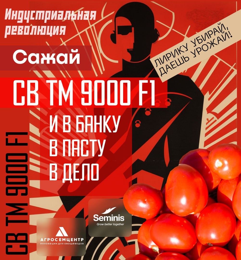 ⚙️ СВ ТМ 9000 F1 — ТОМАТ ПЯТИЛЕТКИ! Лирику — в сторону. Даёшь урожай! Даёшь банку, Даёшь пасту, Даёшь результат! ⚡ Плотный (75–80 г). Красный. Выровненный. Работает — как станок. Не размазывается. Не капризничает. Собрал — и в дело. Без разговоров. ⚡СВ ТМ 9000 F1 — в пасту, в банку, в дело. Сухие вещества — 5,5–6,0 % Густота — 28–30 тыс. раст./га Срок — 68–70 дней 📦 Механизированная уборка? Да. 📈 Урожай? Да. 🚜 Поле? Да. 📲 Пишите — семена есть!