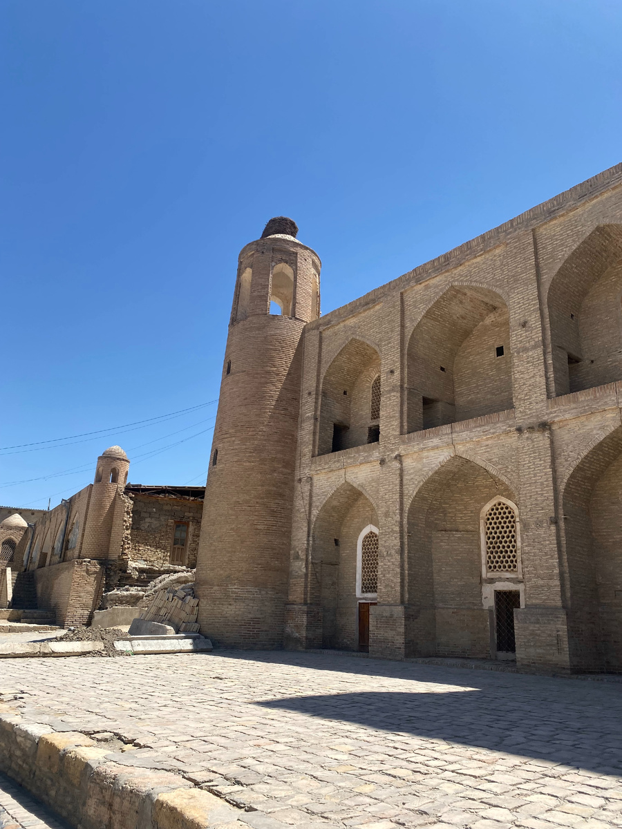 Как только мы сошли с поезда, мне показалось, что в лицо мне направили фен с горячим потоком воздуха – в Бухаре очень сильные ветра, и это связано с расположением города среди пустынь. Честно говоря, погодные условия несколько затруднили осмотр достопримечательностей, ведь находиться долго на раскаленном солнце было совершенно невозможно, и мы как можно чаще старались находиться в тени. Но все же за несколько часов, проведенных в Бухаре, мы успели пройтись по главным туристическим местам.