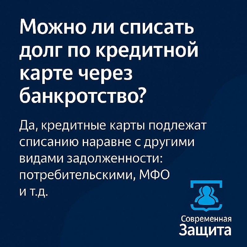 Можно ли списать долг по кредитной карте через банкротство ❓ Да, кредитные карты подлежат списанию наравне с другими видами задолженности: потребительскими, МФО и т.д. ❕ Важно понимать: — лимит по карте = полноценный долг — начисленные проценты, штрафы и комиссии тоже учитываются — даже если долг по карте небольшой — его можно включить в общее дело по банкротству Главное — не продолжать пользоваться картой, когда вы уже всерьёз задумались о процедуре. Такие действия суд может расценить как злоупотребление. Если вы не справляетесь с кредиткой — не тяните. Чем раньше начнёте решать — тем больше шансов избежать проблем с судом и приставами. Если у вас есть вопрос по своей карте, то вы можете задать его здесь, и наши юристы лично разберут вашу ситуацию 👈🏻