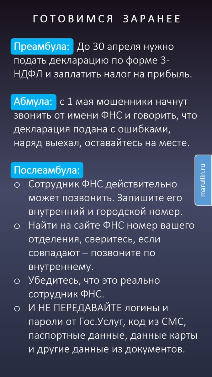 Не забываем выполнить гражданский долг и помним, что мошенники скоро будут звонить под предлогом не поданной или поданной с ошибками декларации за 2024 год. Ссылка https://www.gosuslugi.ru/help/faq/tax_declaration/350120
