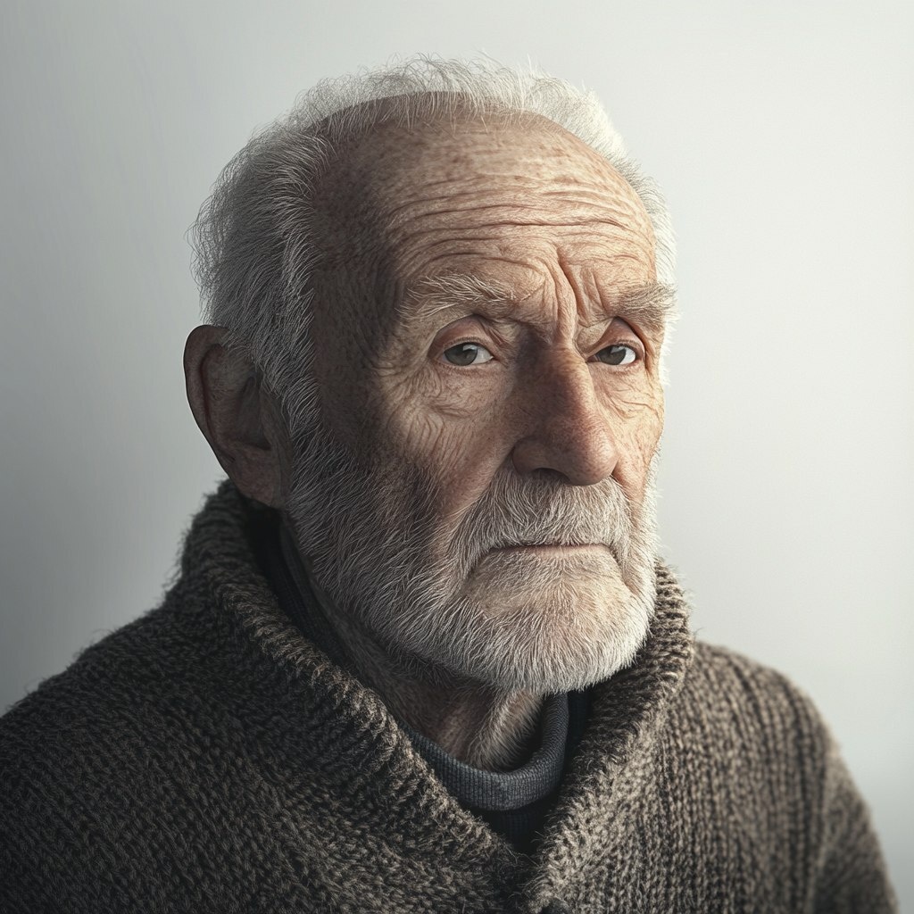 Создано на основе запроса: cinematic of the grandpa, hyper realism, white background, a plain light wall natural lighting