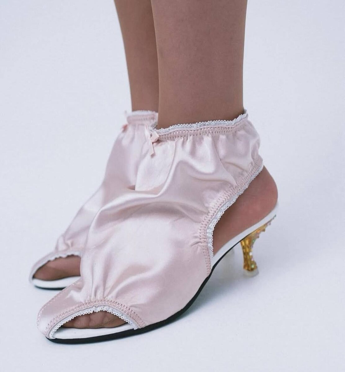 - Хотите смейтесь, хотите нет, но бренд Jenny fax придумал трусы для наших ножек, вы не ослышались, смотрите сами. Атласные босоножки с укрепленным мыском. Кто рискнет надеть?