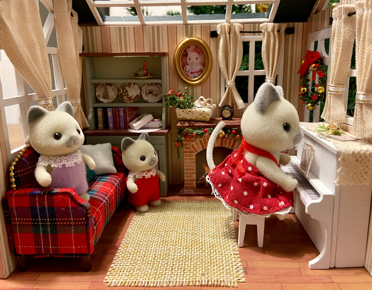 Они получились довольно симпатичные, но все же не совсем устраивали. Во-первых, масштаб. Он явно меньше сильванского, поэтому далеко не все предметы смотрятся гармонично рядом с фигурками. Во-вторых, домики очень хрупкие, предметы сделаны из бумаги и дощечек, поэтому они не функциональны, ничего не открывается и отваливается от любого прикосновения. Я, правда, пыталась хоть как-то улучшить ситуацию и, например, для дверей использовала миниатюрные петли. Неоткрывающиеся двери - это уж слишком!