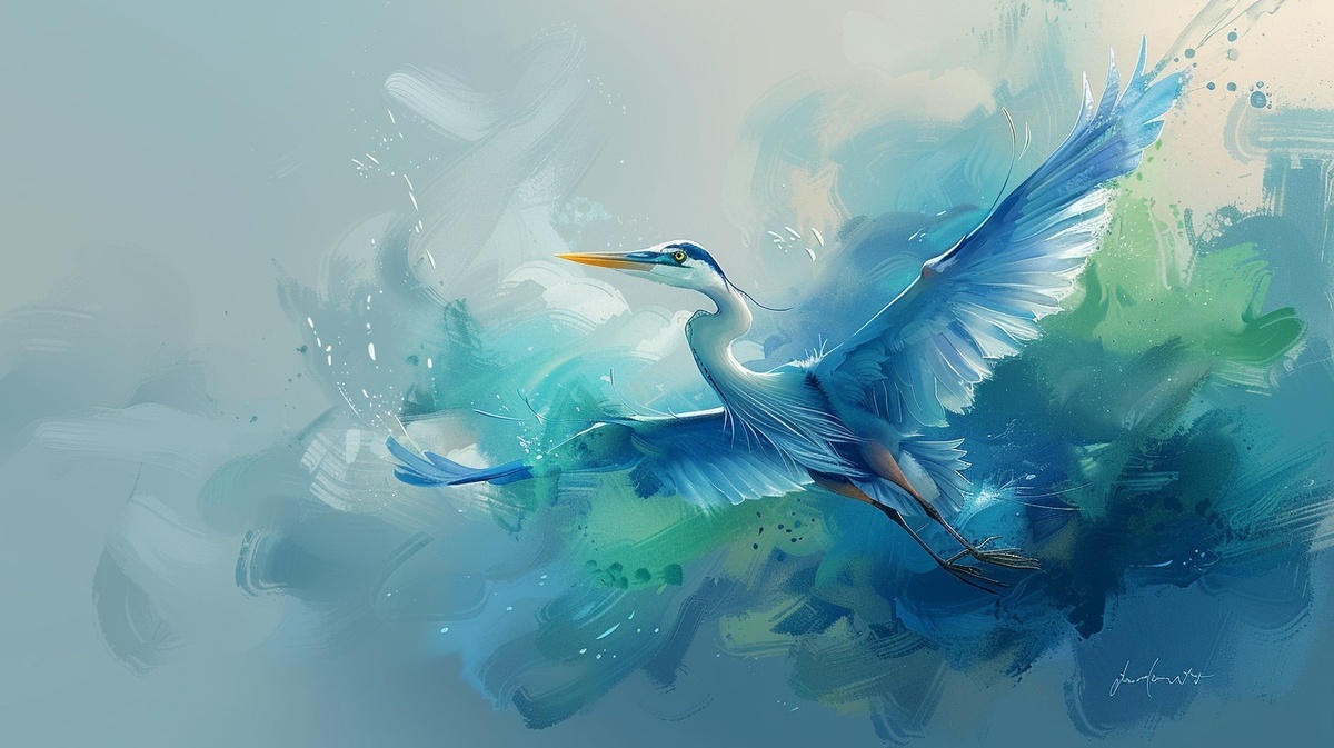 Создано на основе запроса: Minimalist Mexican folkart, Yokai Great Blue Heron in flight