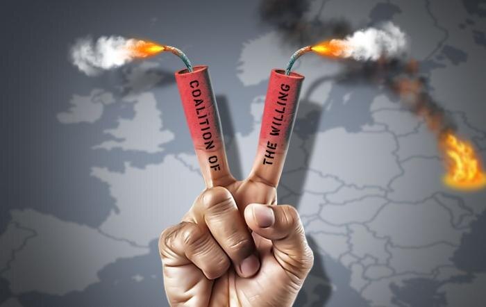 Во-первых, Европа должна отказаться от отправки миротворцев на Украину после завершения огня и любого другого участия своих военных в конфликте.