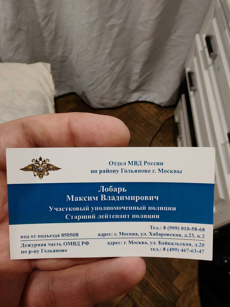 ✏️ Подслушано в Гольяново: На Сахалинской сегодня по квартирам ходили полицейские, выясняли(кто живёт в квартире, кто собственник, имеется ли дома оружие). Мне представился как участковый Лобарь Максим Владимирович. Оставил визитку. С ним ещё видел молодая девушка(тоже в форме). Так же заходили в соседний дом к товарищу, но говорит был другой сотрудник(нерусский) и так же представился участковым. На районе же вроде один участковый? Или я что то путаю... Думаем не мошенники ли и если нет, то в честь чего такой обход. Никогда на моей памяти такого не было. #гольяново #golyanovo #вао Гольяново | ВКонтакте | Предложить новость