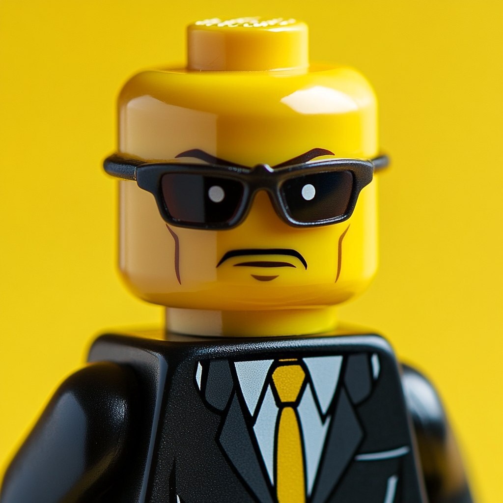Создано на основе запроса: serious Lego neo matrix man photo portrait looking in camera
