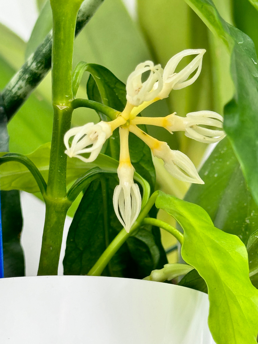 Hoya decipulae является эндемиком Западного Лампунга, Суматры, Индонезии в охраняемом лесу. Этот вид был обнаружен в смешанном холмистом лесу 16 июля 2017 года. Растение росло на бамбуковых растениях на высоте 783 метра над уровнем моря. Эта хойя получила свое название от латинского слова decipula. Что означает ловить, заманивать в ловушку, завлекать или обманывать. И это всё относится к цветку, который до того, как он полностью раскроется, напоминает ловушку или клетку. Мне же напоминает форму фонарика из бумаги, когда-то такой делала в детстве. Не знаю почему такая ассоциация, но именно данная форма цветка вызывает такое сравнение. Hoya decipulae больше всего похожа на Hoya papaschonii. Оба растения представляют собой тонколистные эпифитные кустарники со схожим цветением. Однако цветы Hoya decipulae намного крупнее и имеют характерную форму клетки. На данный момент Hoya decipulae у меня совсем недавно куплена. Примерно 5-6 месяцев назад. Так как она у меня всего несколько месяц