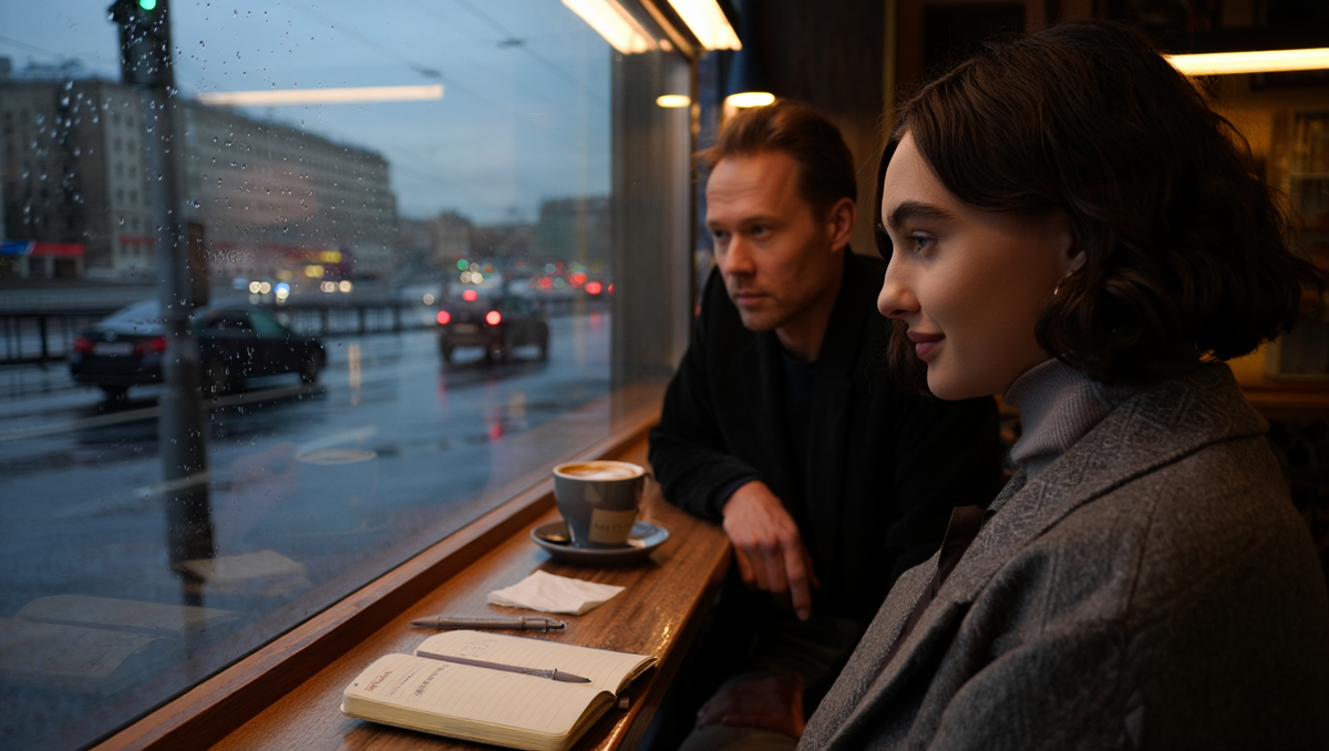 На следующий день Максим соврал Ирине, что идёт на корпоратив. «Старый дворик» был всё тем же: потёртые деревянные столики, запах свежемолотого кофе, тусклый свет ламп. Максим пришёл раньше и занял столик у окна, теребя бумажную салфетку.