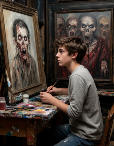 К сожалению, у этой истории есть реальный прототип... Бросил ВУЗ на первом курсе, – назвал преподавателя «Душнилой» и попросил себя называть не Эдуард Портянкин, а Эдди, просто Эдди. Потом сказал сокурсникам-студентам: –Уходим. И ушел…, – позади никого не оказалось, – ушел один. Из книг – он любил две. В романе Золя «Творчество» он был в корне не согласен с тем, что художник почувствовал страх перед своим творением, из-за недостижимости правды. Он считал, что, наоборот, творения должны бояться своего творца. В романе Моэма «Луна и грош» он одобрял поступок бывшего биржевого маклера, ставшего художником, когда тот завещал шедевр его жизни — роспись на стенах дома сжечь после его смерти. Ну чурался копировать русский авангард, где в мастерскую по очереди заходили Ларионов, Кандинский, Шагал, Малевич, Ротко и Гончаров, правда, с того-го-го-го света. Не пил чай без того-го-го, чтобы не налить кипяток в чашку, где была акварель. Чай каждый раз был то розовый, то синий, то фиолетовый. Грыз