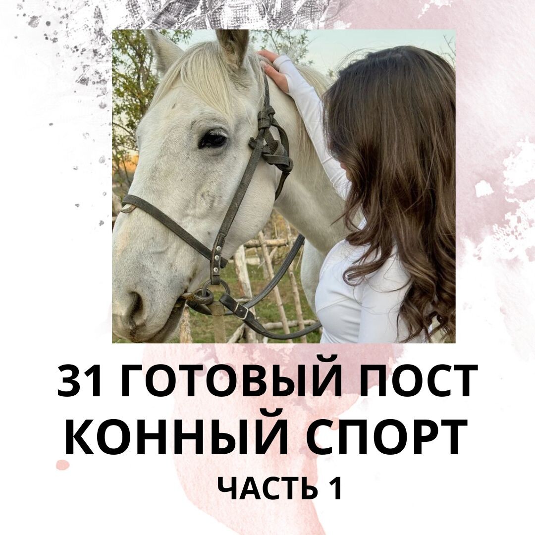 Купить посты можете на ВБ: Темы постов: 1.История конного спорта: от древности до наших дней 2.Что взять с собой на первую тренировку по верховой езде? 3.Топ-5 ошибок новичков в конном спорте 4.Как перестать бояться лошадей? 5.Как чистить лошадь правильно? 6.Как быстро научиться держаться в седле? 7. Чем кормить лошадь, чтобы она была в форме? 8.Как ухаживать за копытами? 9.Как понять, что лошадь счастлива? 10.Разбираем повадки лошади: что она хочет сказать? 11.Как развить чувство равновесия? 12.5 лучших упражнений для крепкой посадки 13.Растяжка для всадников: зачем она нужна? 14.Как перестать зажиматься в седле? 15.Психология всадника: как справляться со страхом? 16.Как научиться «слышать» лошадь телом? 17.Как правильно держать повод? 18. Учимся управлять без жёсткой руки 19.Что такое «лёгкая посадка» и как её освоить? 20.Как правильно делать переходы шаг-рысь-галоп? 21.Почему лошадь не слушается? 5 причин 22.Как научиться прыгать через препятствия? 23.Разбираем ошибки в работе на во