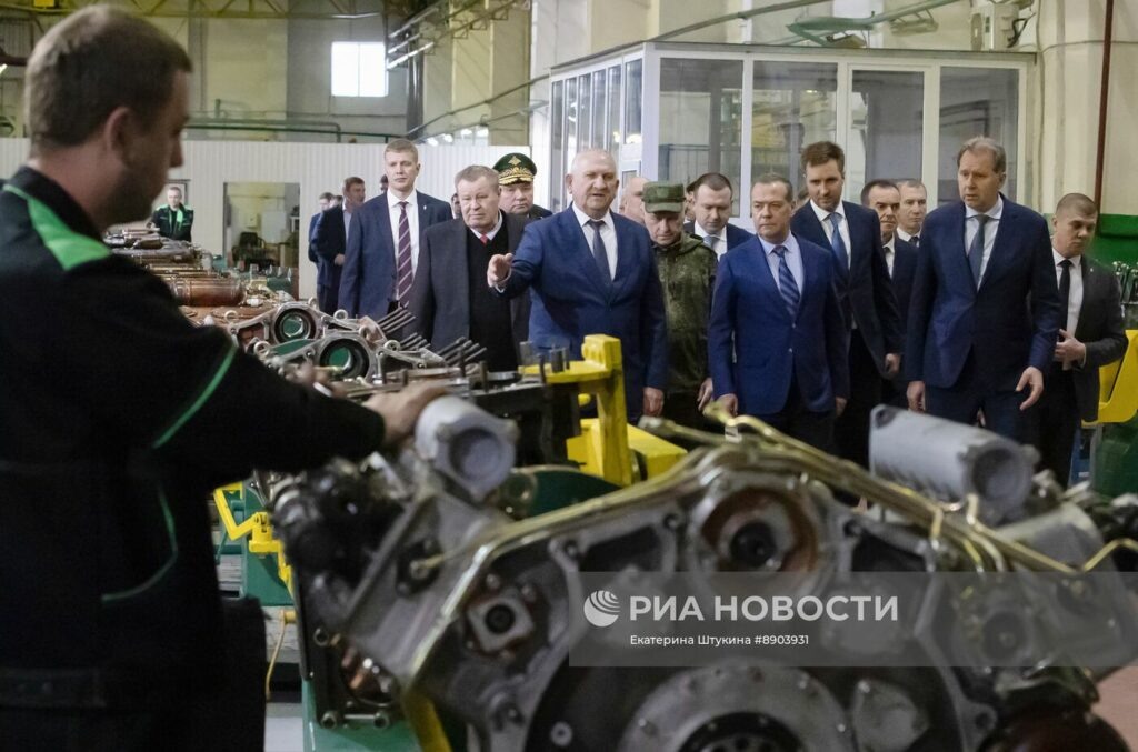 Медведев и Кондратьев посетили предприятие по ремонту бронетехники на Кубани