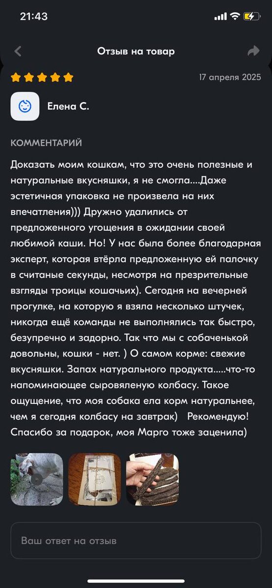 Вот такой вот отзыв сегодня мы получили))) и вроде бы кошки забраковали- печалька… но часть про колбасу на завтрак мне очень понравилась 😂