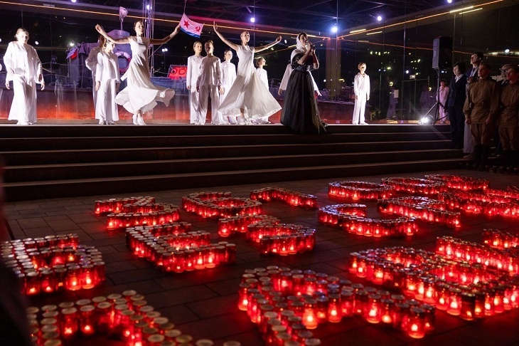 Акция, посвященная памяти жертв геноцида в Сталинградской области в период Великой Отечественной войны, прошла сегодня, 17 апреля, на Центральной набережной Волгограда. Как сообщает ИА «Высота 102» со ссылкой на администрацию региона, на площадке мемориального комплекса «Бронекатер БК-31» волонтеры выложили из свечей-лампадок «Огненные картины войны». В мероприятии приняли участие более 120 человек: руководители опорных площадок всероссийского проекта «Без срока давности» из 35 субъектов РФ, активисты детских и молодежных патриотических объединений Волгоградской области, сотрудники центра патриотической работы «Авангард», поисковики, волонтеры Победы. Фото администрации Волгоградской области