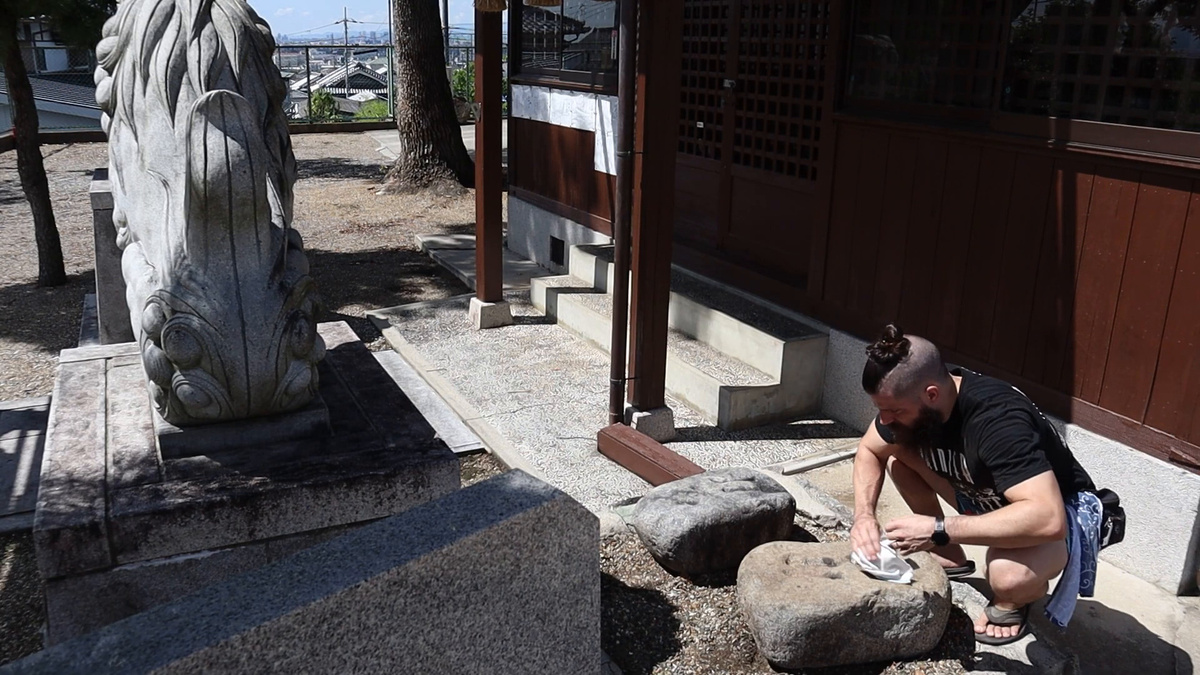 Очистка камня от грязи. — Изображение: Дэвид «Тамоцу» Данлэп .