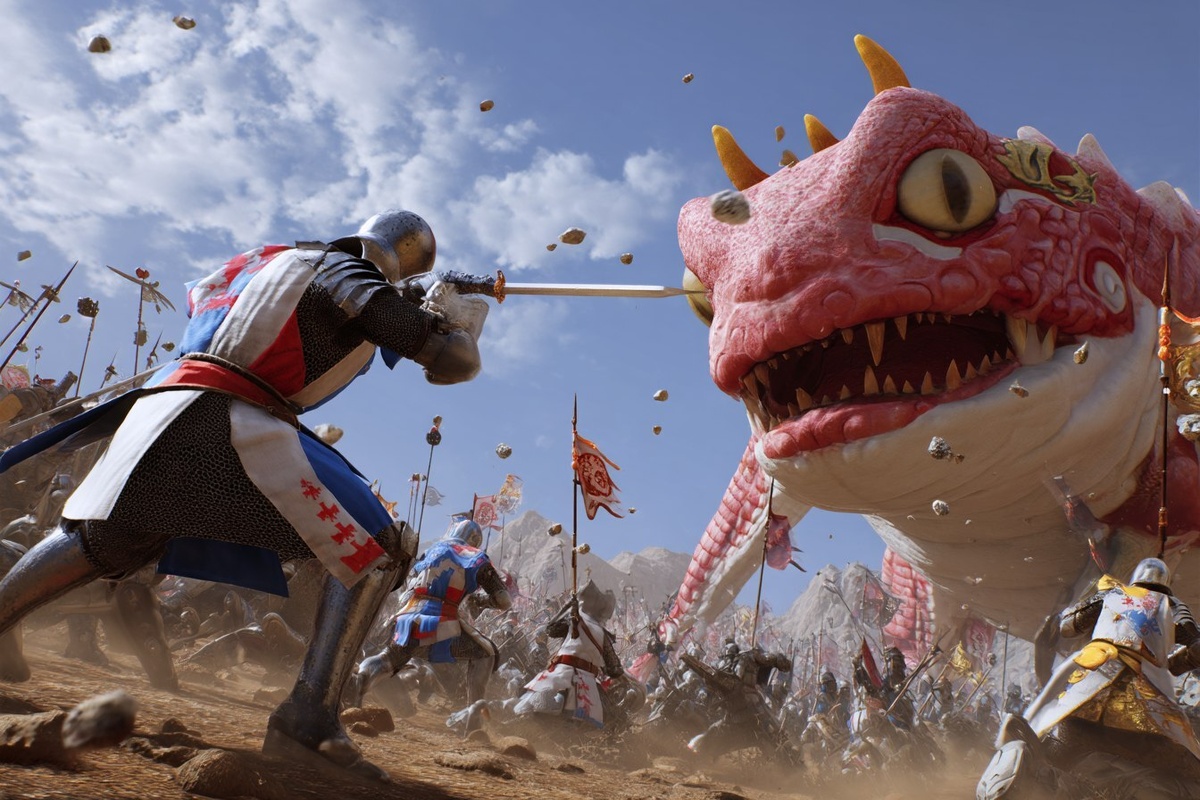 Создано на основе запроса: The Knight's Crusaders fighting a giant Yokai, screenshot from Total War: The Crusades