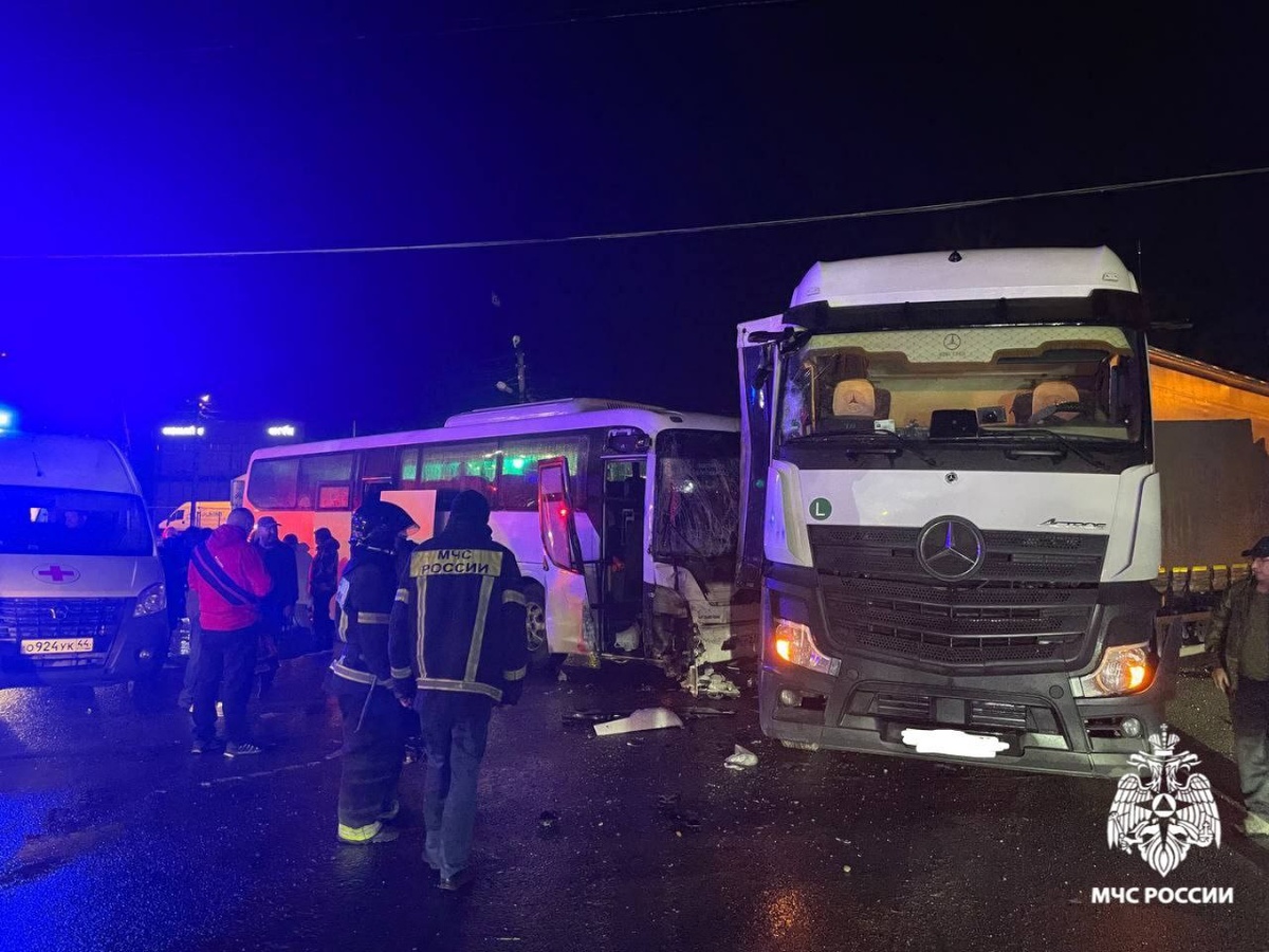 ❗❗❗ Сотрудники МЧС России реагировали на ДТП в Костроме 📍На пересечении улиц Галичская и Индустриальная произошло столкновение пассажирского автобуса сообщением Кострома-Боговарово и грузового автомобиля. В автобусе находилось 26 человек (24 пассажира и 2 водителя). Предварительно, четверо из них получили травмы. Погибших нет. Обстоятельства и подробности случившегося устанавливаются. @mchs_official @mchskostroma_44