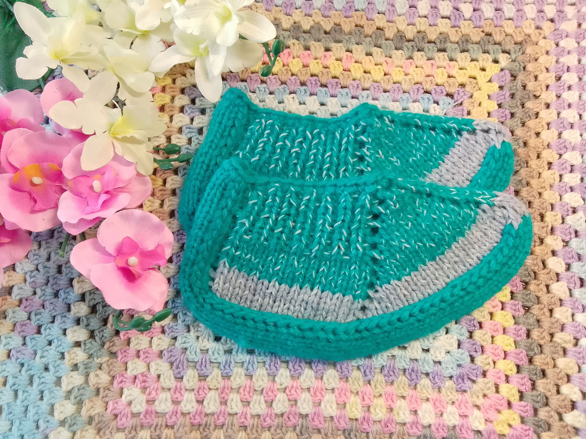 Связаны из остатков, голубая пряжа это Ализе Лана Голд, серая полушерсть, название не помню.