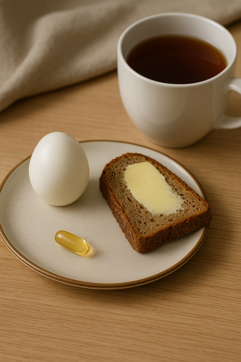Если вы не знаете, с чего начать утро — начните с яйца, ржаного хлеба и правильного витамина 😌