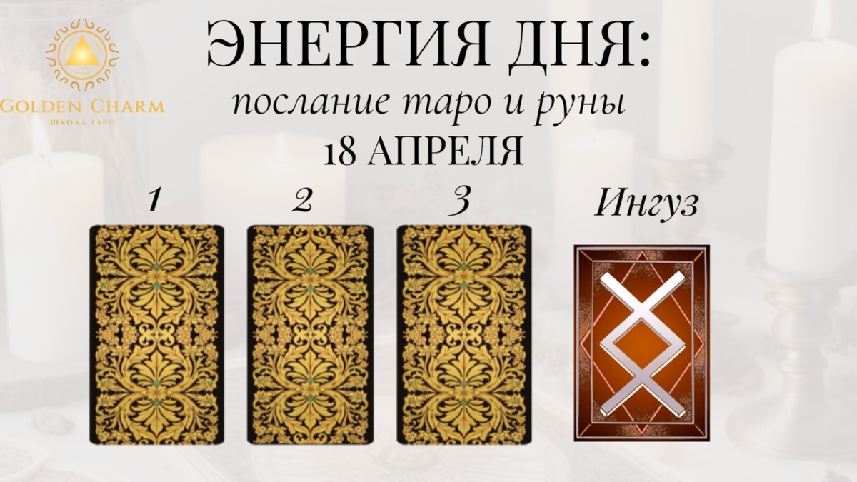 Заказать личный расклад тут✅ Прогноз на 18 апреля: что тебя ждёт Приходи на обучение Таро ✅ Выбери карту — 1, 2 или 3 — и узнай, какой путь для тебя: 1. 3 Кубков Это день радости, веселья и общения. Позволь себе расслабиться, отпустить заботы и насладиться моментом. 2. Звезда Ты почувствуешь внутренний подъём, веру в лучшее будущее и возможность начать всё заново. Это идеальный период для реализации мечтаний, зарождения новых идей и веры в успех. 3. 4 Пентаклей Важно избегать чрезмерной привязанности к вещам и помнить о балансе между сбережением и тратой ресурсов. Умей наслаждаться плодами своего труда, сохраняя умеренность и здравый смысл. Руна дня — Ингуз Наступило время завершения старых дел, расставания с прошлым и перехода к новому этапу жизни. Готовься к изменениям, открывайся новым возможностям и будь открыт переменам. Напиши цифру карты + ИНГУЗ в комментариях, чтобы активировать энергию. Хочешь личный расклад? Пиши — посмотрим, что ждёт тебя: Заказать лич