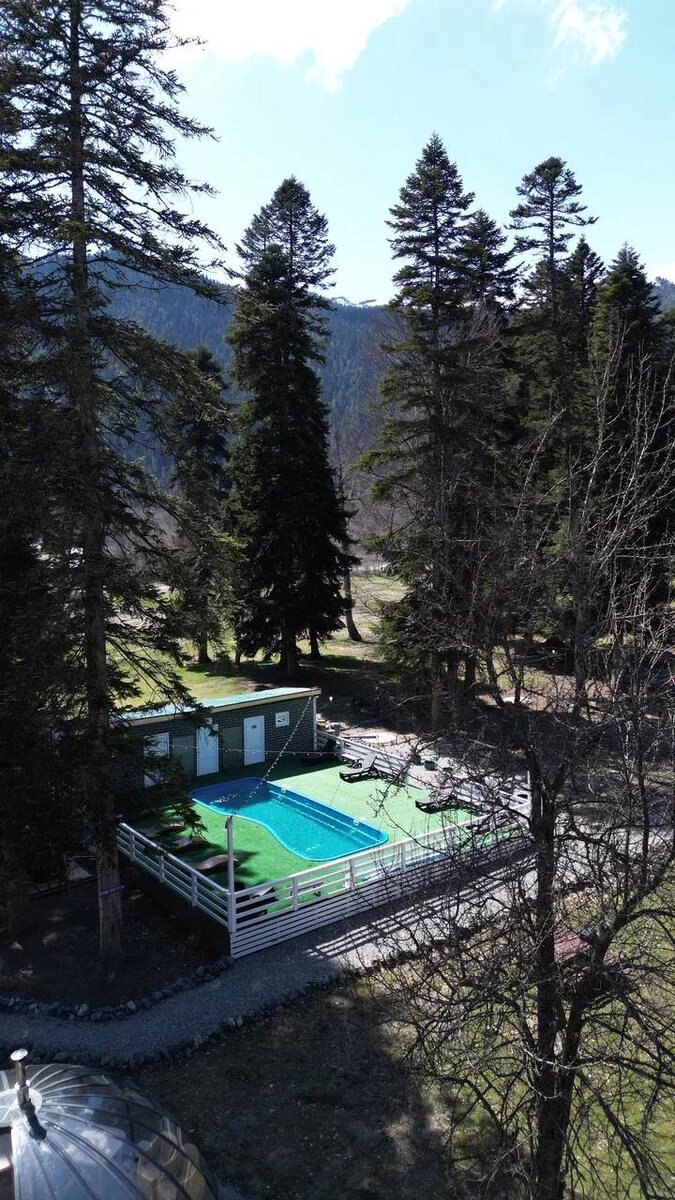 Тёплый подогреваемый бассейн с видом на горы и лес