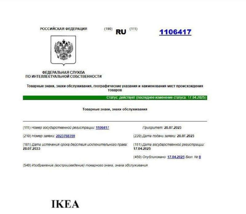 IKEA зарегистрировала в России новый товарный знак, следует из базы данных Роспатента