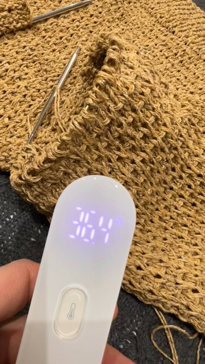 Около 10 рядов всего провязал, и температура упала на пол градуса 🤩! Вязание охлаждает 😁