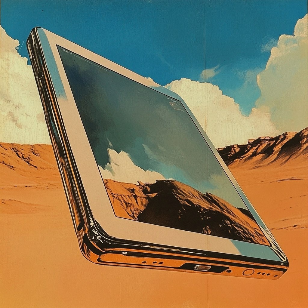 Создано на основе запроса: An ipad, the screen of the ipad has an open recording app running on it, the ipad is floating above the desert surface --- Автоперевод: IPad, на экране iPad имеет открытое приложение для записи, на нем работает iPad, плывущий над поверхностью пустыни Как тебе картинка? 🤔 https://dzen.ru/id/65c0c65c86e4f837c27b24d7 #ИИ #AI #нейросеть #midjourney #art