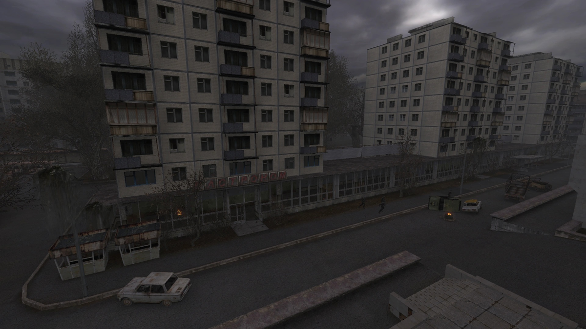 Вы никогда не обращали внимание на эти странные девятиэтажки из Припяти в ТЧ? Как будто хрущёвки-переростки, странно смотрящиеся не к месту... К реальной Припяти эти дома, конечно, никакого отношения не имеют. Но в жизни их повстречать вполне можно. Это - жилые дома проекта 1-464А-20. Дома эти были разработаны московским институтом "Гипростройиндустрия" в 1964 году и строились до 1969 года. Активнее всего их строили в Киеве, где этим домам дали ласковое прозвище "Коробочка". Первые такие дома появились в районе НАУ, а ближе всего к центру стоит дом 7 в Михайловском переулке. После 1969 проект признали неудачным из-за слишком больших габаритов плана относительно недостаточной этажности и недостатков в планировочной схеме, и закрыли, но к тому времени было построено немало домов по всей УССР - от Львова до Донецка. В основном "коробочки" строились точечно, но изредка появлялись и "триптихи", визуально объединённые торговыми рядами. Именно таким "триптихом" были первые девятиэтажки Доне