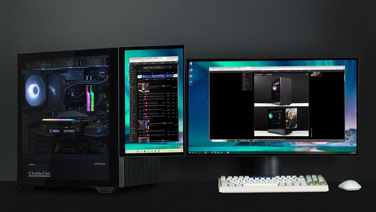 Zalman имеет большой ассортимент компьютерных корпусов и других комплектующих. Компания предлагает решения практически любого форм-фактора. Многие из них популярны у публики, как например Z10. Однако, накануне производитель подготовил ещё одну модификацию — Z10 DS. Особенностью новинки стал 15,6-дюймовый дисплей на фронтальной панели, имеющий соотношение сторон 16:9 и разрешение 1920х1080 пикселей. При этом производитель не озвучил, по какой технологии был произведён данный экран. Стоит отметить, что устройство может быть использовано в качестве дополнительного монитора. Подключение к системе происходит за счёт кабеля mini HDMI-HDMI. Для подачи энергии предусмотрен выход USB-C. Также благодаря креплению, есть возможность развернуть панель на 90 градусов. Дисплей имеет габариты 367х220х27 мм, и его можно без проблем отсоединить от корпуса и использовать отдельно. Вместо экрана устанавливается стандартная решётка. В остальном данный Midi-Tower схож со стандартным Zalman Z10. Новинка имее
